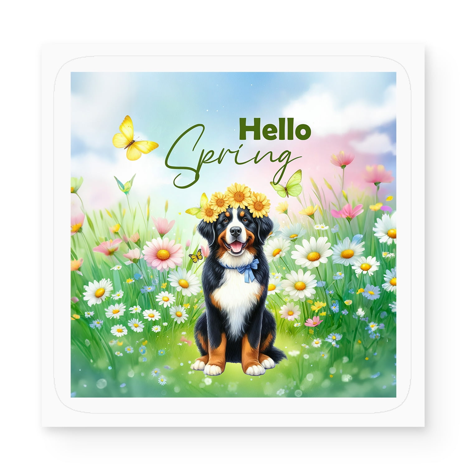 Bernese Mountain Dog Hello Spring Time Flower Floral Nature Vinyl