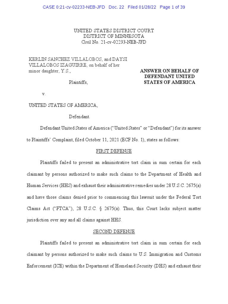 USA Answer To Complaint PDF Federal Tort Claims Act Complaint