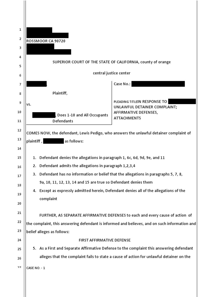 Answer To Complaint PDF Affirmative Defense Cause Of Action