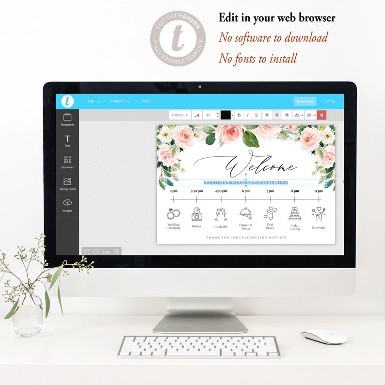 Simple Wedding Timeline Poster Template Modern Wedding Order Etsy