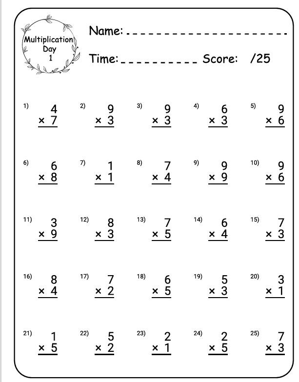 Multiplication Practice Worksheets Digital PDF Download Grade 3