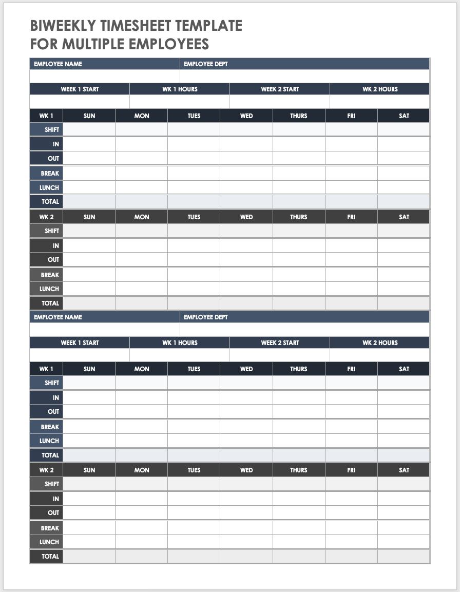 Free Biweekly Timesheet Templates Smartsheet