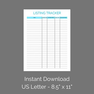 PRINTABLE Listing Tracker 8 5x11 Instant Download PDF Etsy