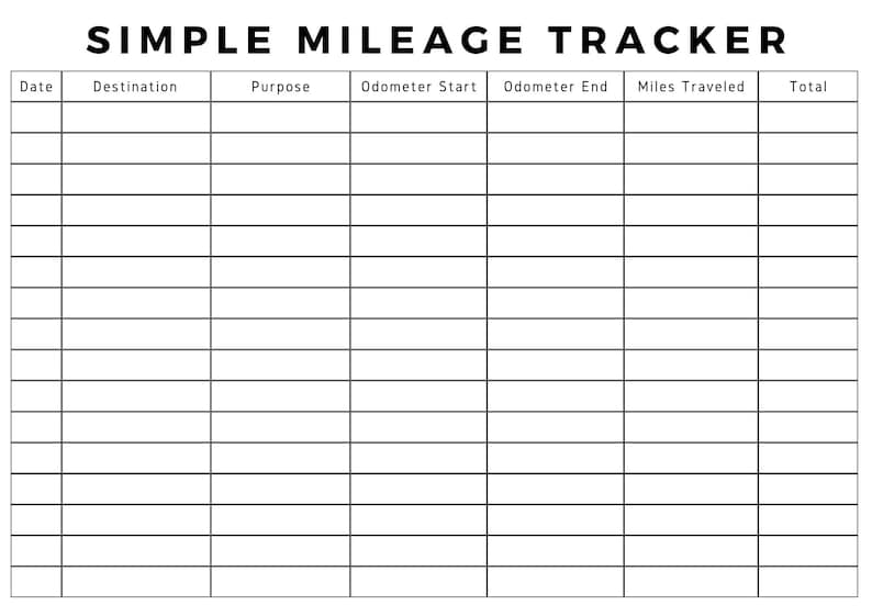 Simple Mileage Tracker Miles Travel Tracking Log Paper Digital Download