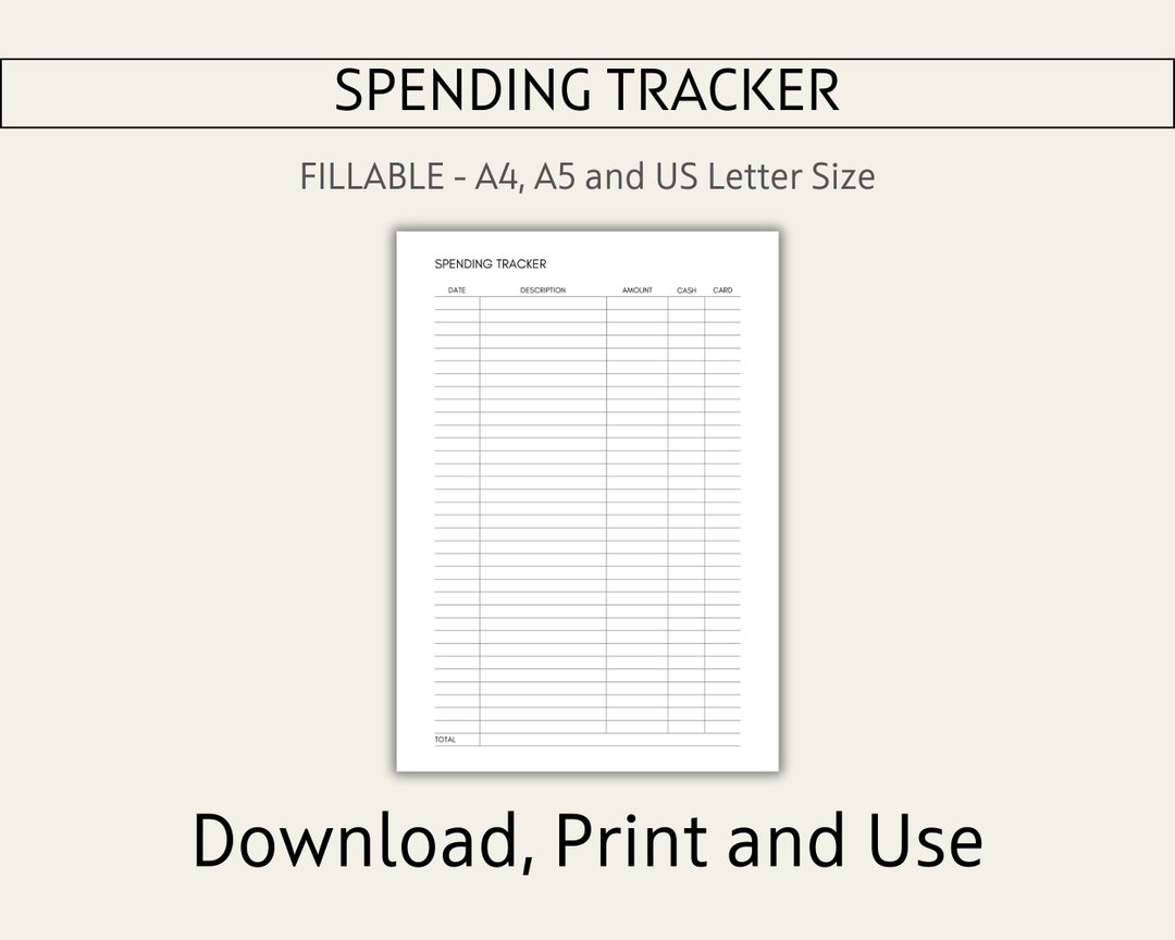 Spending Tracker Printable Expense Tracker Budget Template Fillable