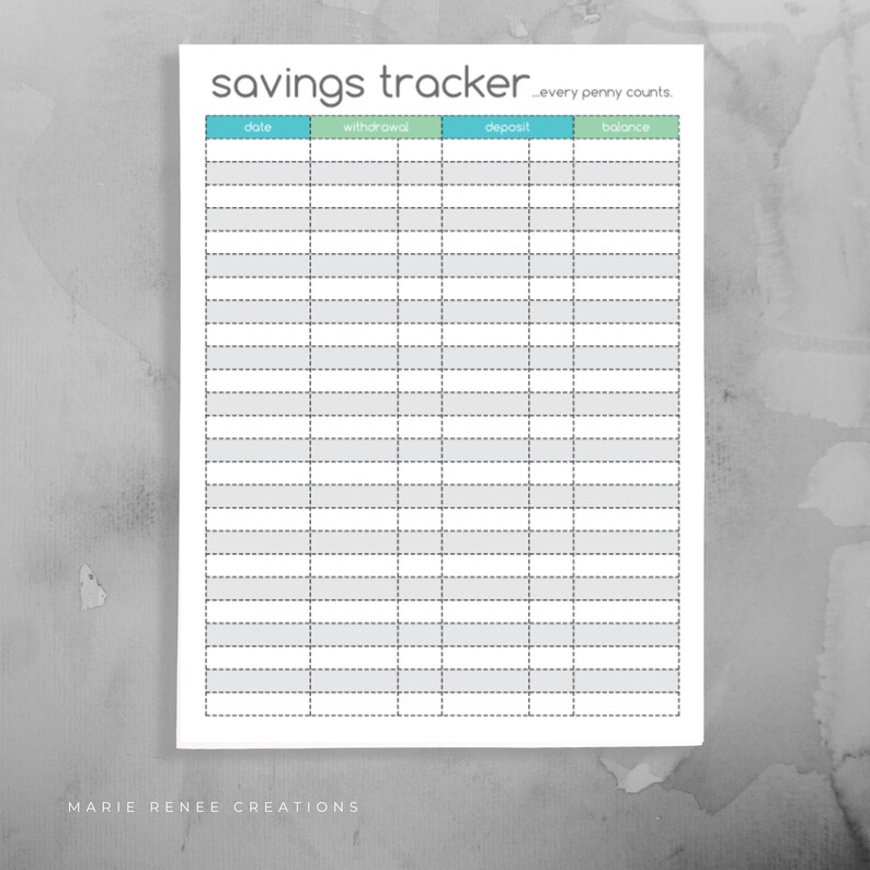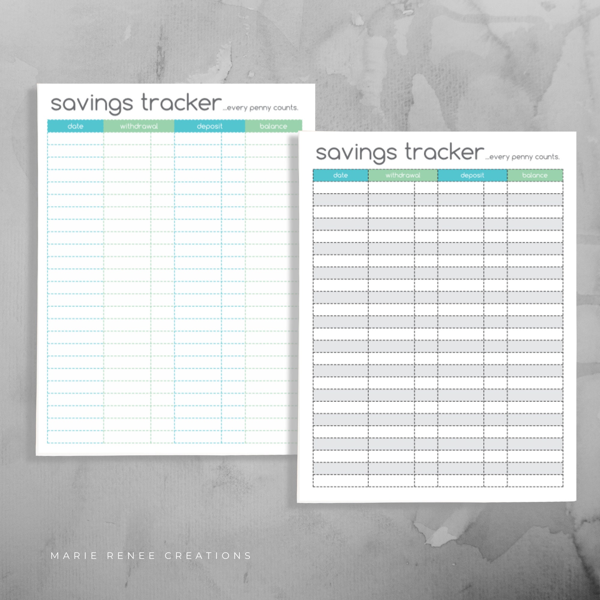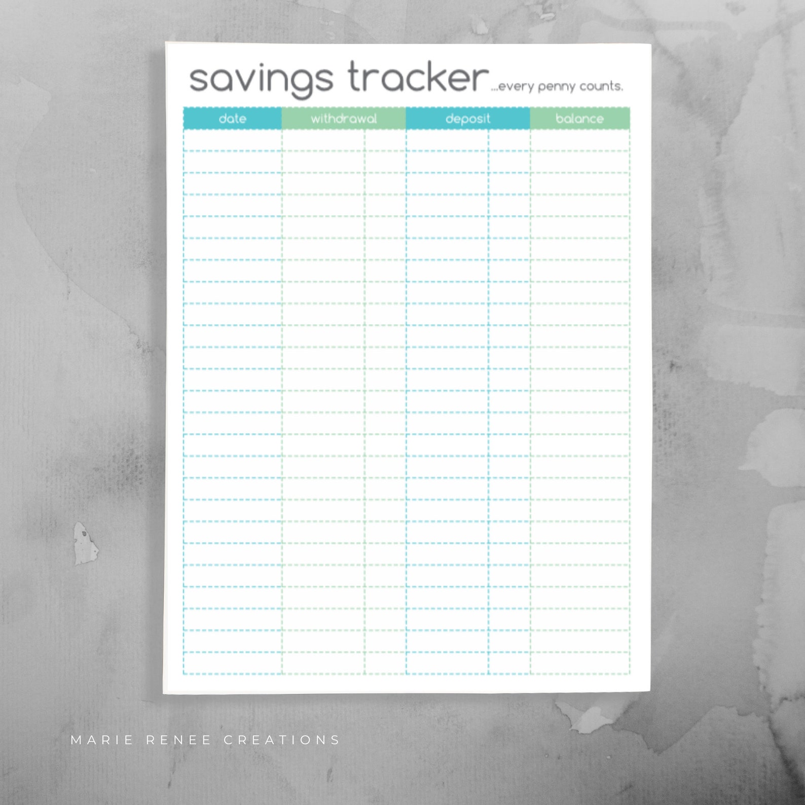Savings Tracker Printable Register Teal and Green Etsy UK