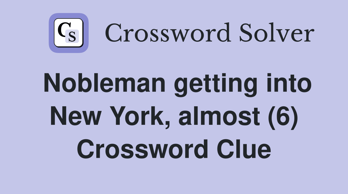 Nobleman getting into New York almost (6) Crossword Clue Answers