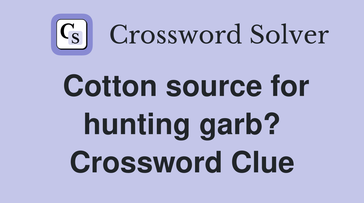 Cotton source for hunting garb? Crossword Clue Answers Crossword Solver