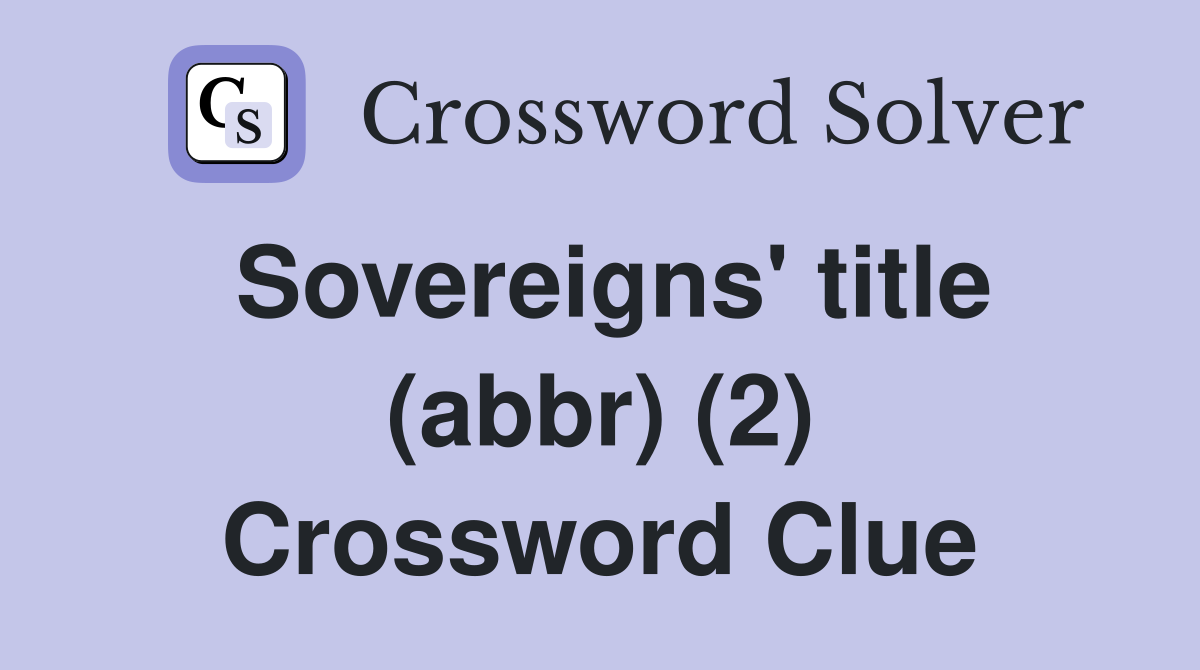 Sovereigns #39 title (abbr) (2) Crossword Clue Answers Crossword Solver