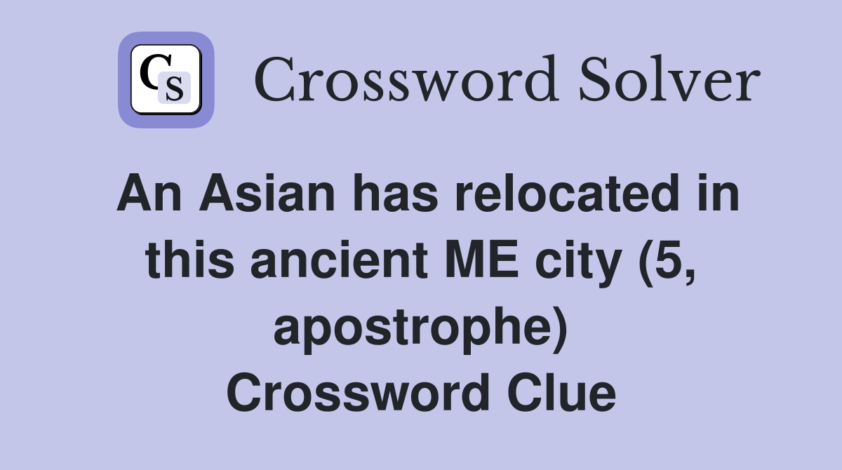 An Asian has relocated in this ancient ME city (5 apostrophe