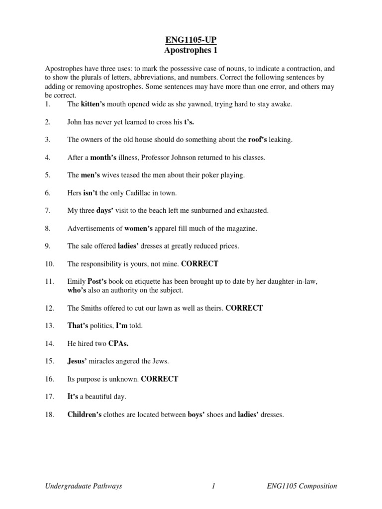 Apostrophes KEY PDF