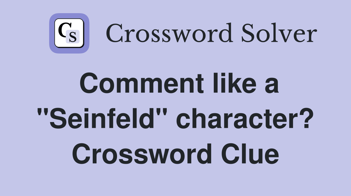 Comment like a quot Seinfeld quot character? Crossword Clue Answers
