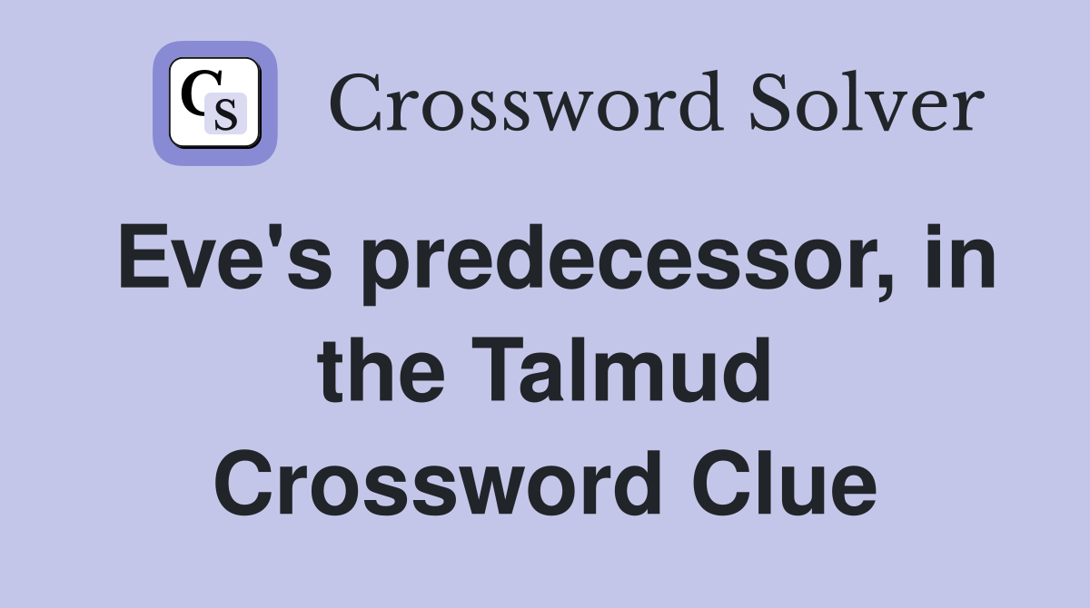 Eve s predecessor in the Talmud Crossword Clue Answers Crossword
