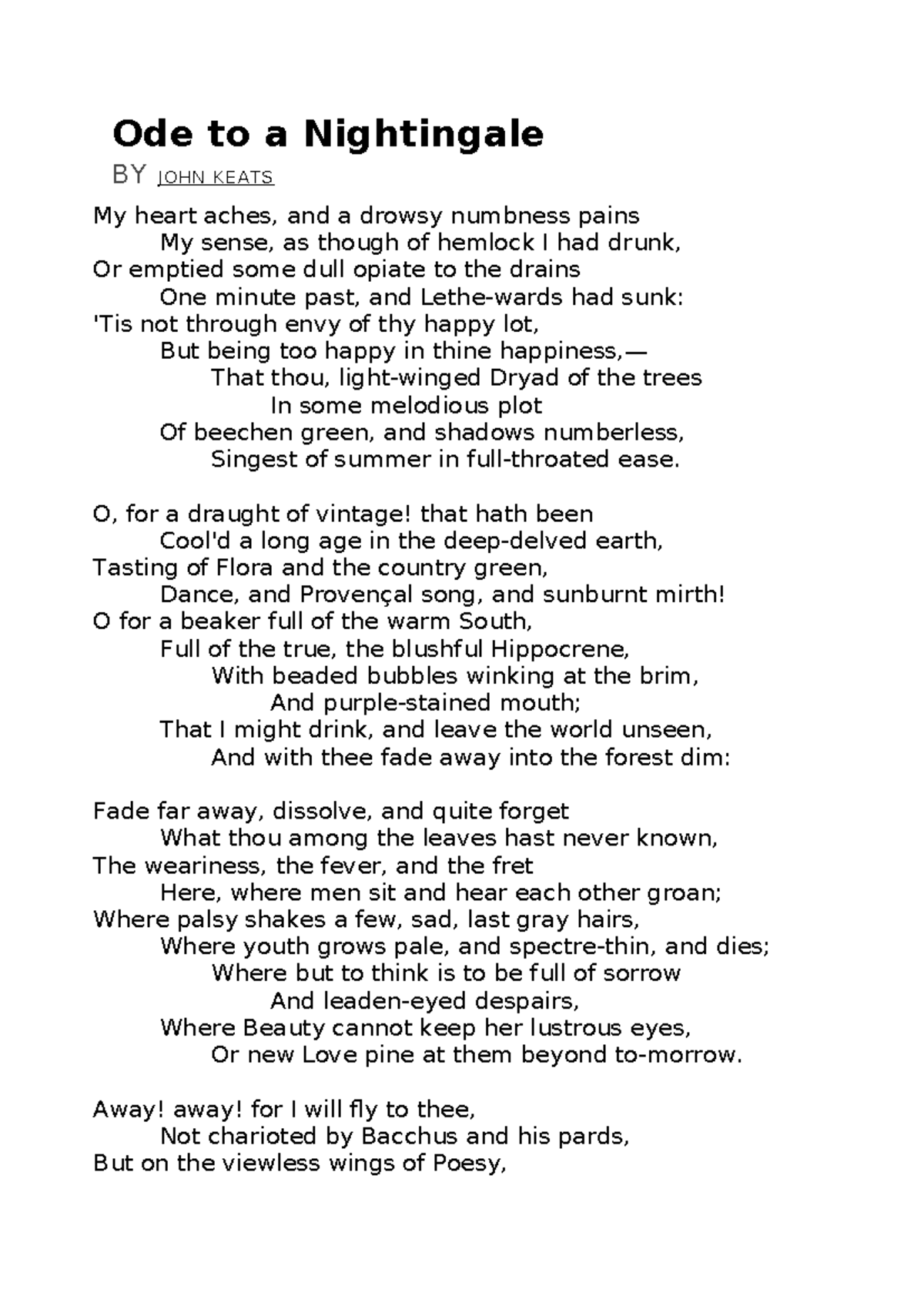 Ode to a Nightingale: Analysis Insights (ENG 101) Studocu