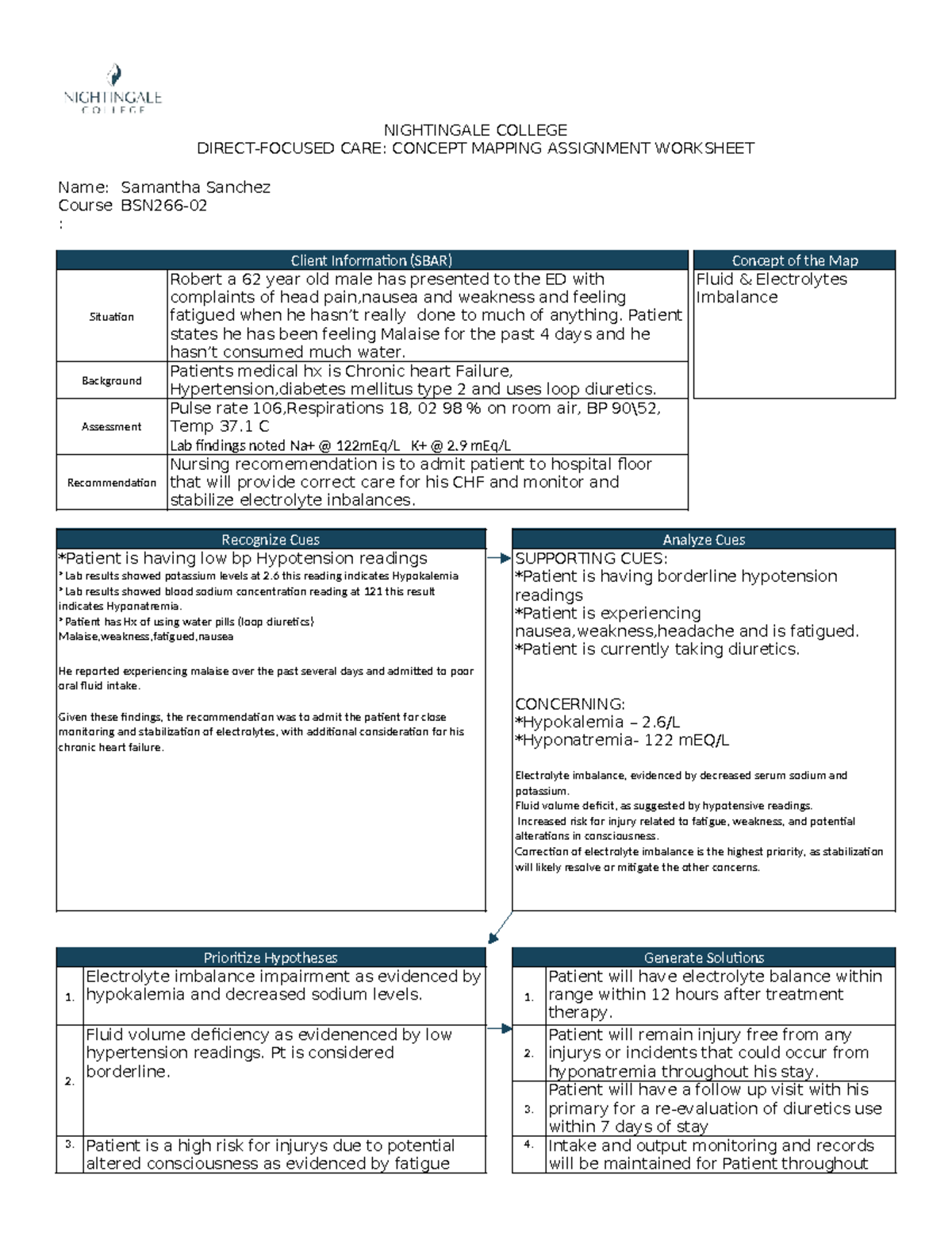 NIGHTINGALE COLLEGE CARE: SBAR Concept Mapping Assignment Studocu