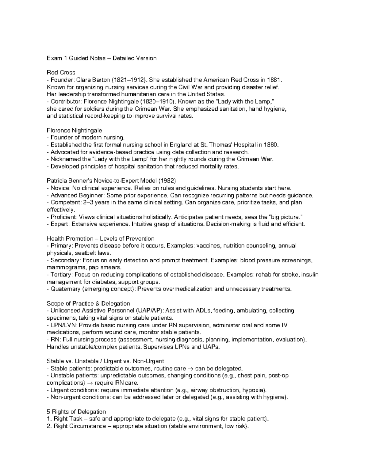 NURS 110 Quiz 1 Week 2 Study Guide: Clara Barton Florence Nightingale