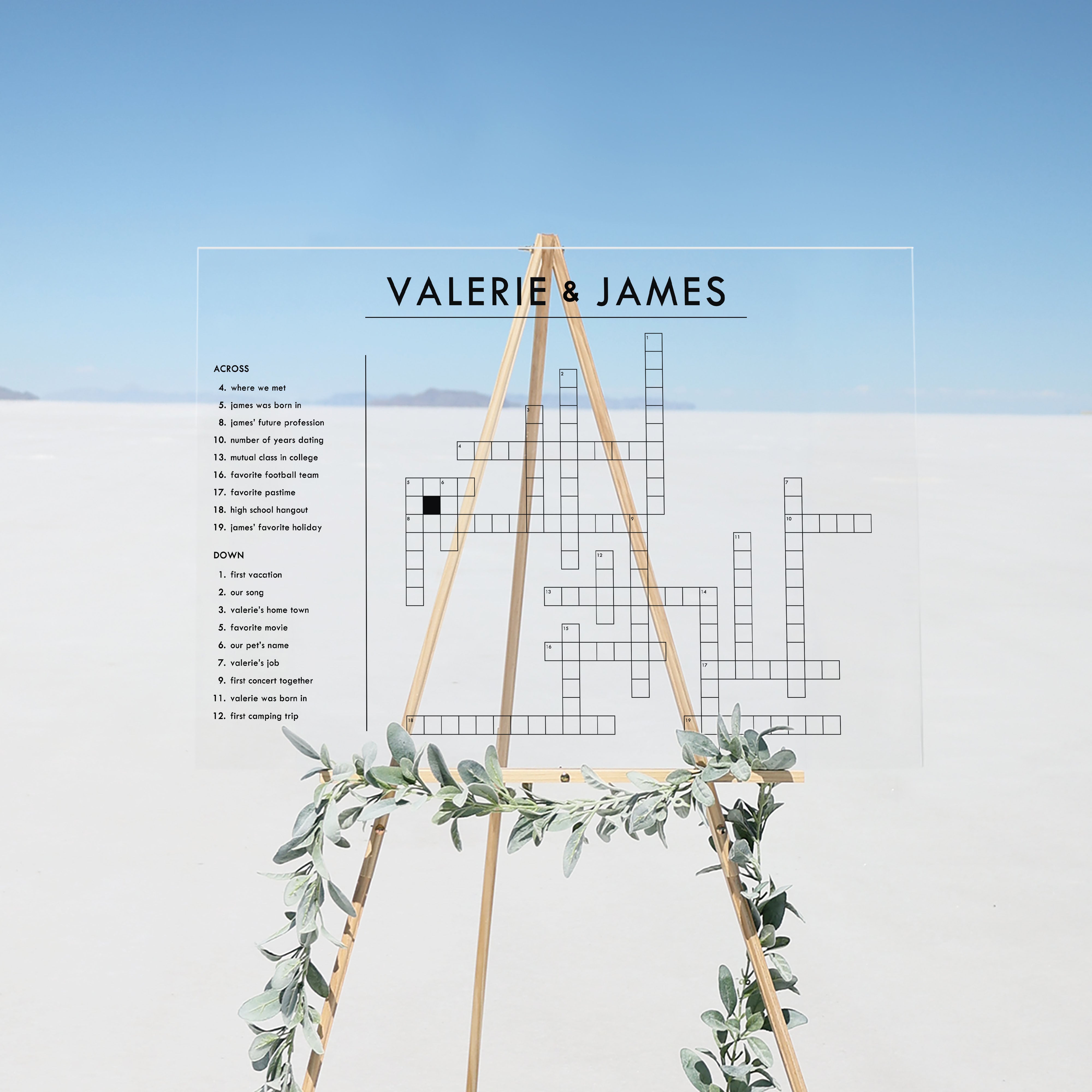 Clear Acrylic Wedding Crossword Sign Horizontal circleandsquaredecor