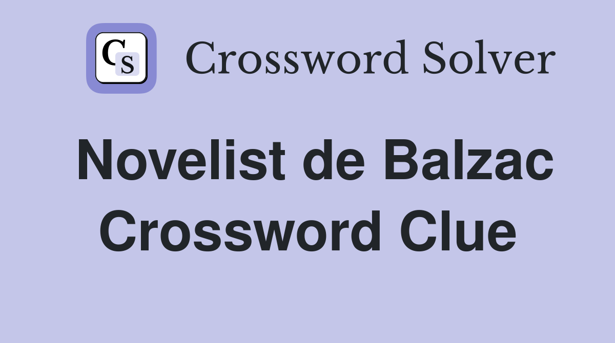Novelist de Balzac Crossword Clue Answers Crossword Solver