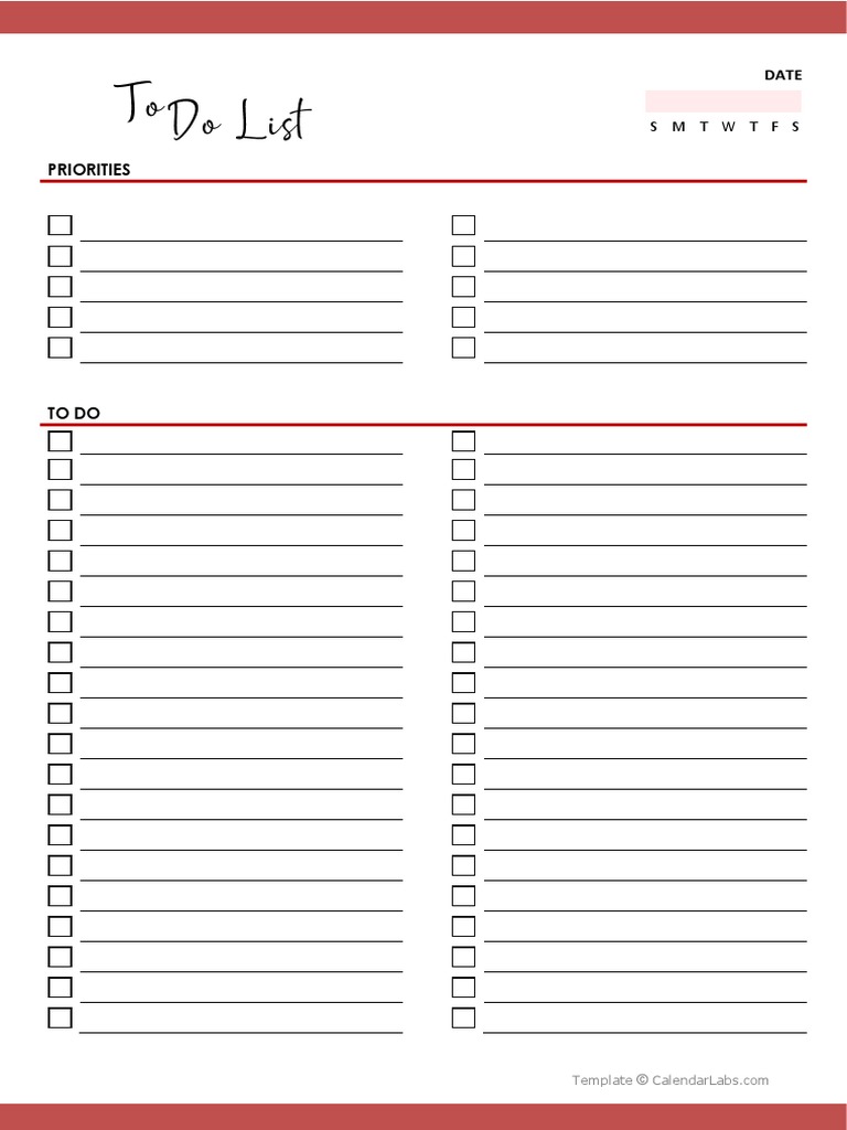 Printable To Do List Template