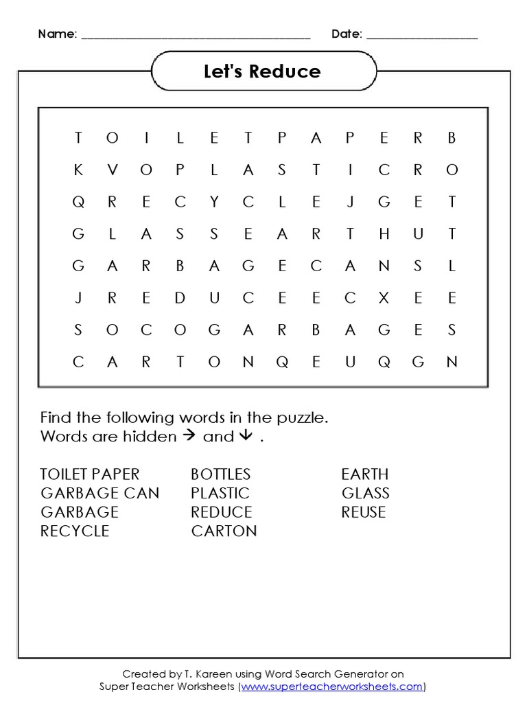 REDUCE REUSE RECYCLE Word Search Puzzle Worksheet Activity Made By