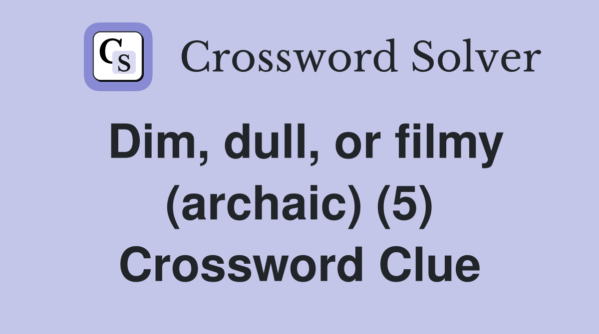 Dim dull or filmy (archaic) (5) Crossword Clue Answers Crossword