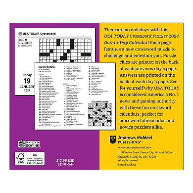 Andrews McMeel USA TODAY Crossword 2024 Day to Day Calendar