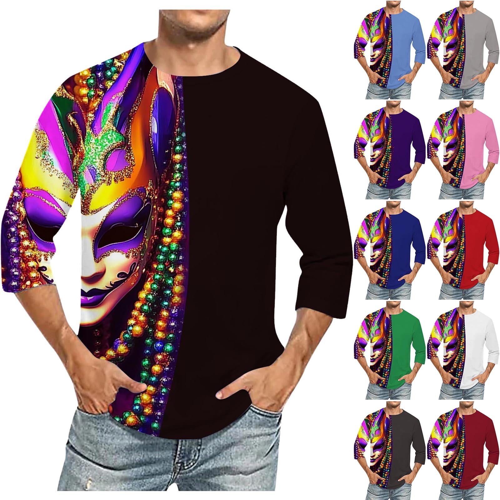 Jinhomg Mardi Gras Tshirts for Men Funny Carnival Themed Masks Print