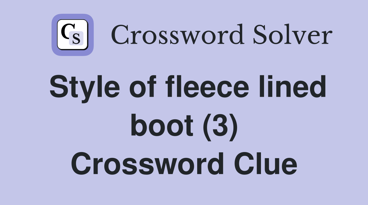 Style of fleece lined boot (3) Crossword Clue Answers Crossword Solver