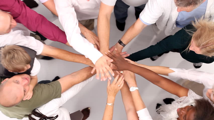 Diverse hands joined together in unity and support Symbolizing unity