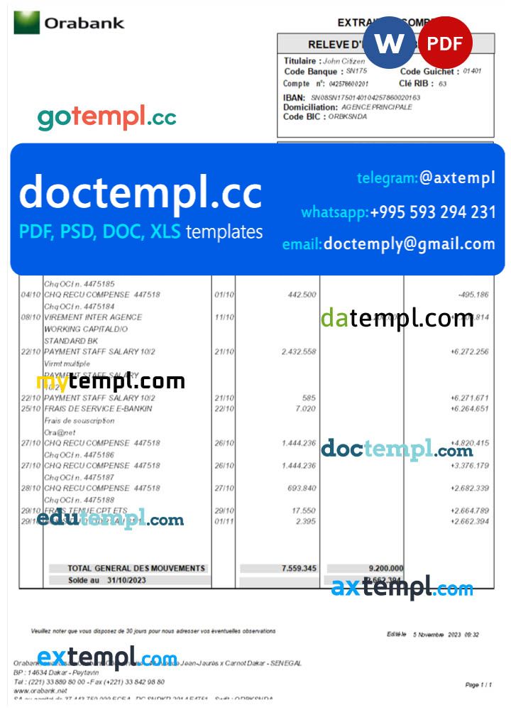 Togo Ecobank Bank statement fake template in Word and PDF format