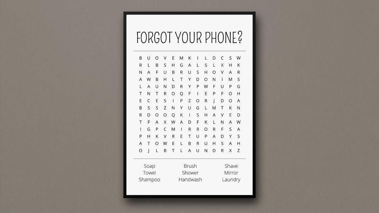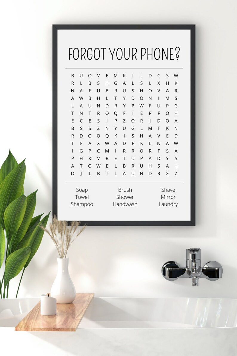 Toilet Crossword Puzzle Funny Bathroom Poster Wall Art Decor Word