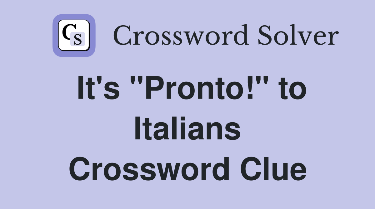 It #39 s quot Pronto quot to Italians Crossword Clue Answers Crossword Solver