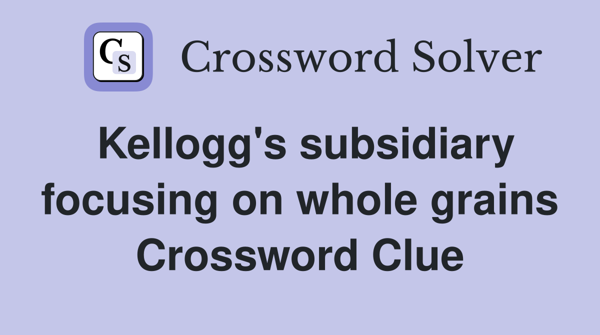 Kellogg #39 s subsidiary focusing on whole grains Crossword Clue Answers