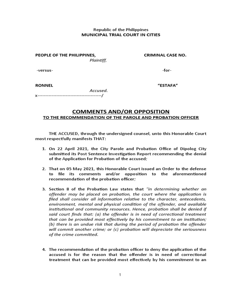 Comments And/Or Opposition: Municipal Trial Court in Cities PDF