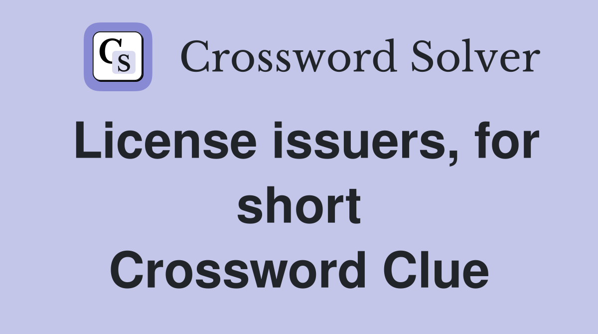License issuers for short Crossword Clue Answers Crossword Solver