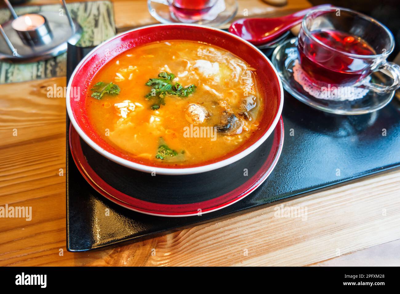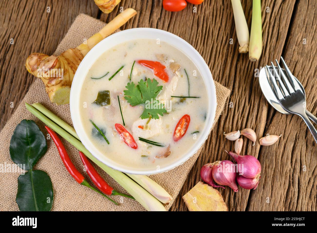 Thai Cuisine Tom Kha Kai chicken in Coconut Milk Soup Stock Photo