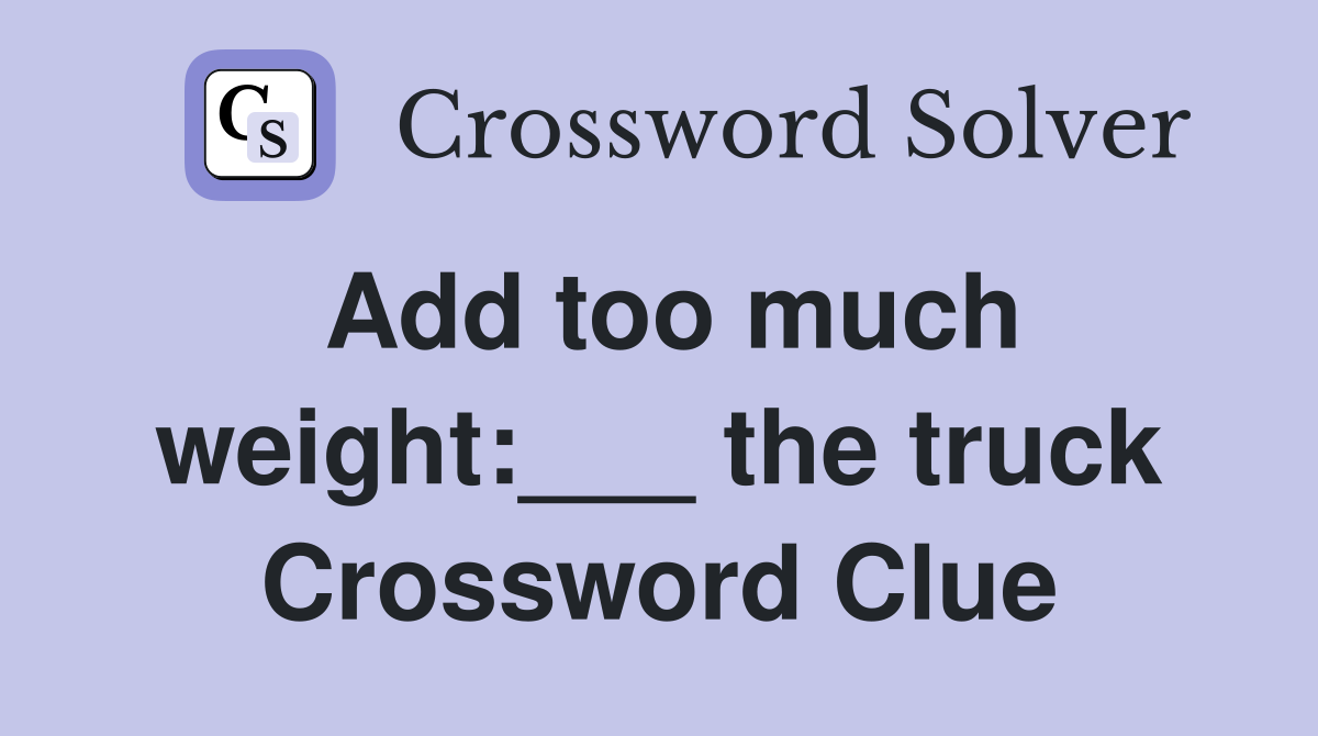 Add too much weight: the truck Crossword Clue Answers Crossword