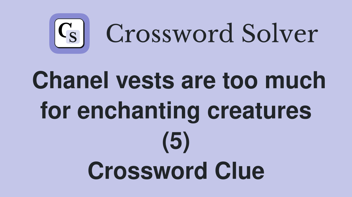 Chanel vests are too much for enchanting creatures (5) Crossword Clue