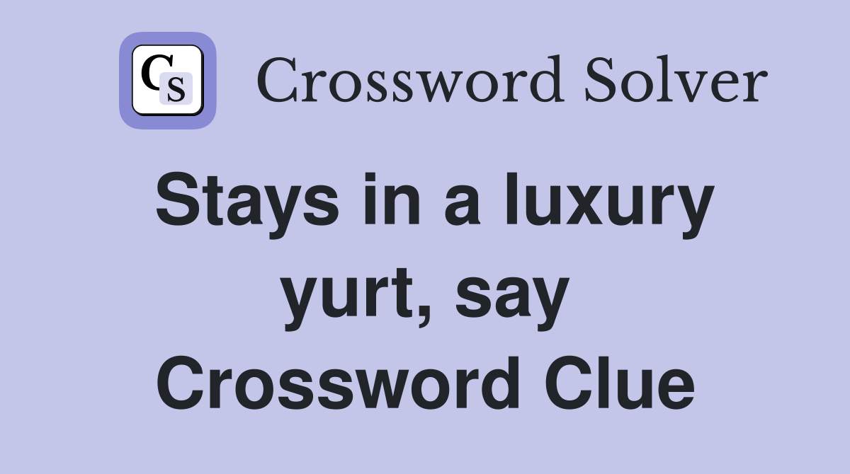 Stays in a luxury yurt say Crossword Clue Answers Crossword Solver