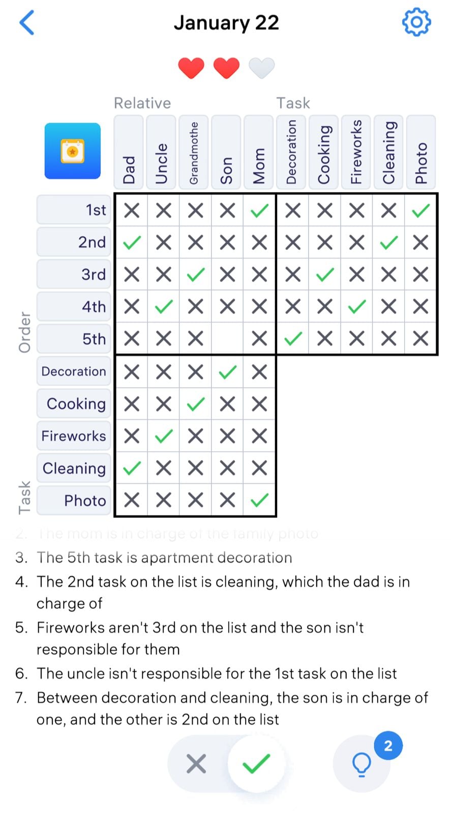 Logic Puzzle Clue Game Daily January 22 2024 qunb