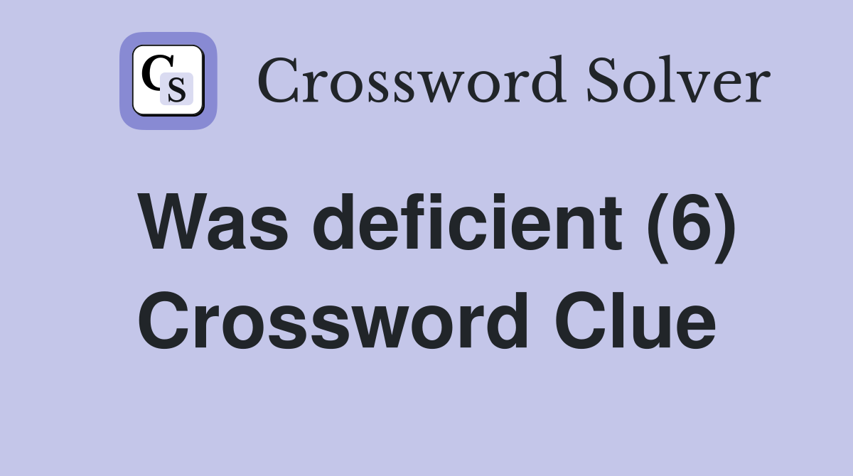 Was deficient (6) Crossword Clue Answers Crossword Solver