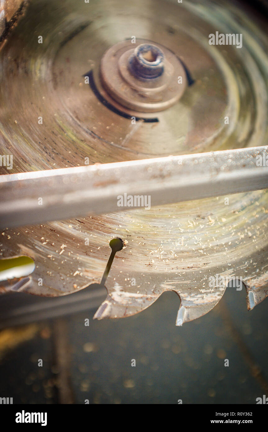 Old worn circular saw power tool cutting wood Stock Photo Alamy