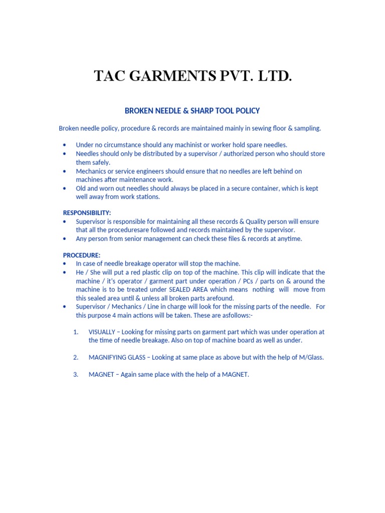 11 Broken Needle Sharp Tool Policy Download Free PDF Sewing