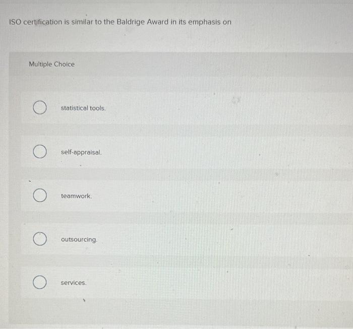 Solved : ISO certification is similar to the Baldrige Awar