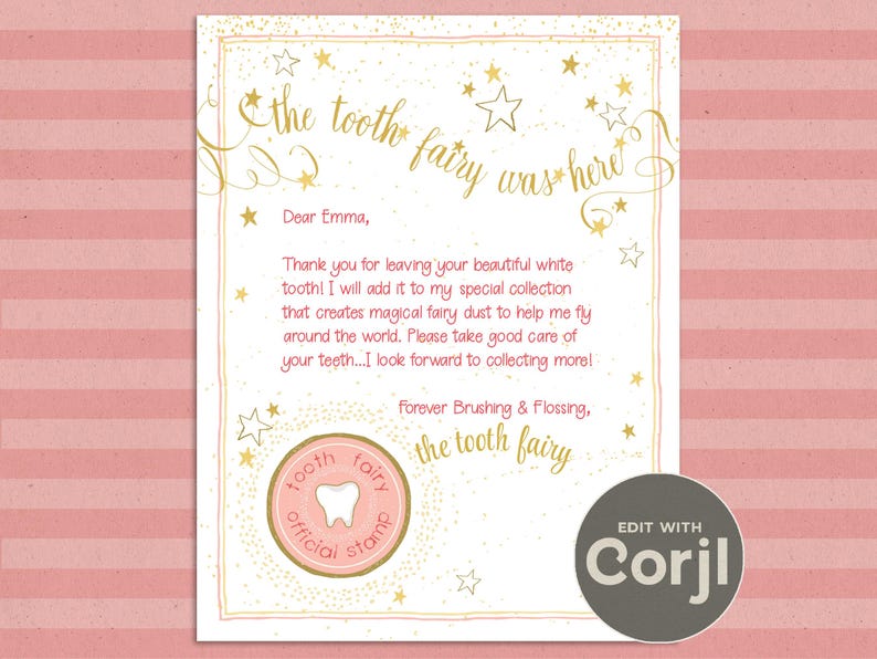 Adorable Tooth Fairy Letter For Girls Cassie Smallwood Tooth fairy