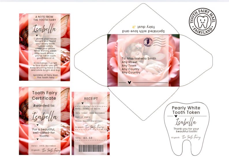 Tooth Fairy Letter Certificate Receipt Printable Set Editable