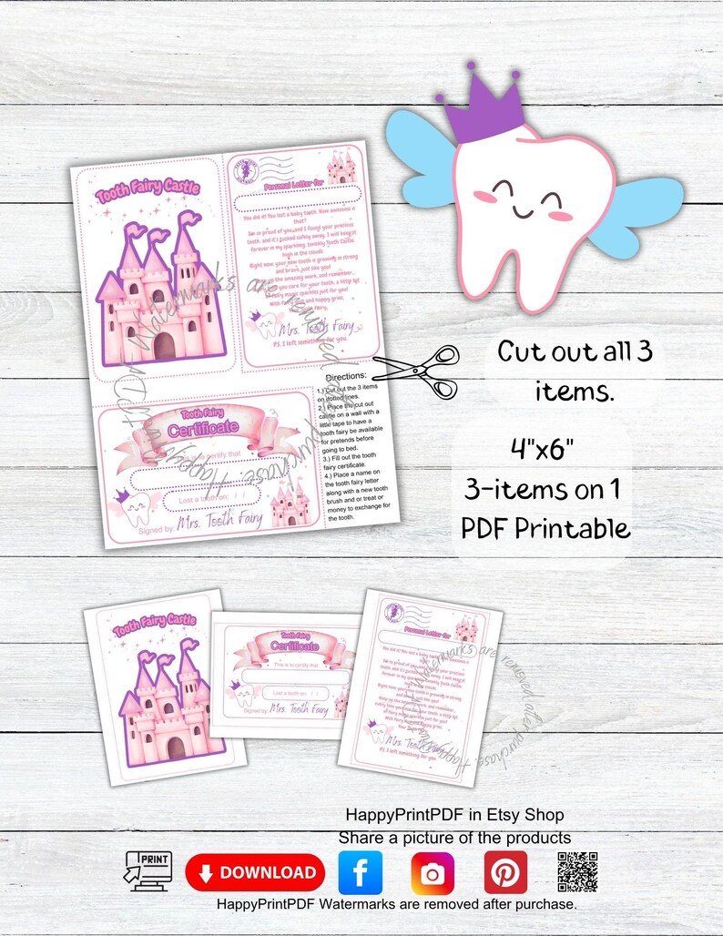 Printable Tooth Fairy Letter and Castle Kit: Printable Certificate (PDF