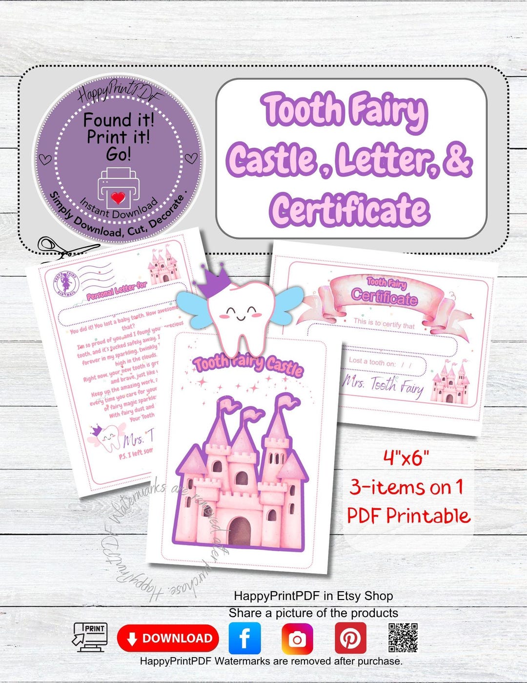 Printable Tooth Fairy Letter Castle Certificate: Printable Kit (PDF
