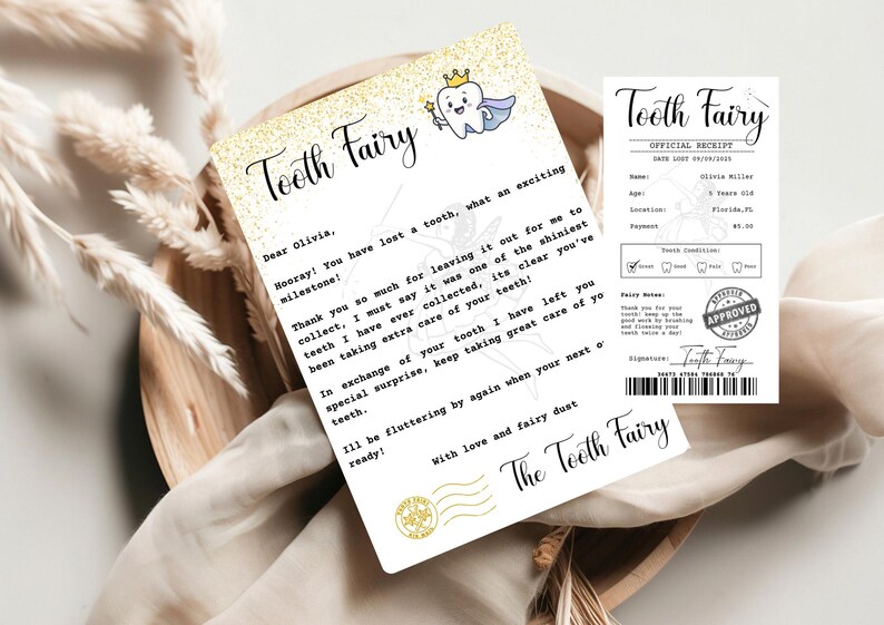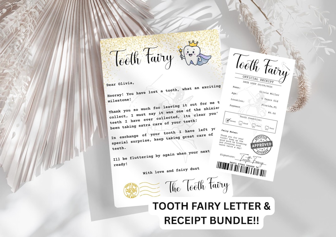 Tooth Fairy Letter Bundle: Certificate Receipt Door Hanger (printable