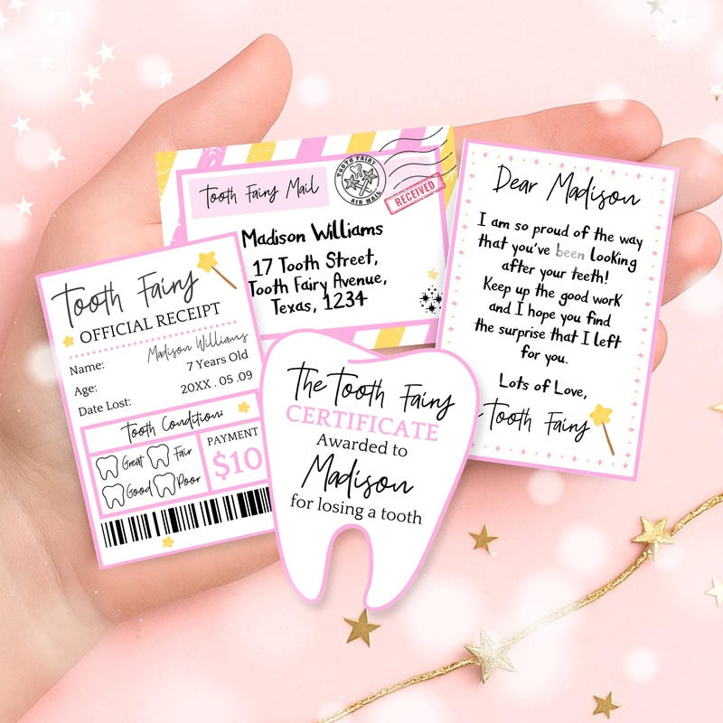 Printable Tooth Fairy Kit Lost Tooth Certificate Envelope Receipt